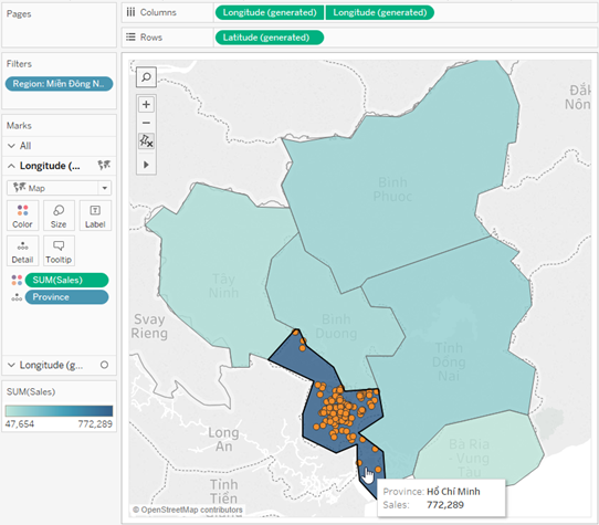 One of the topics that I have been encountering very frequently in my jobs was working with geographical data. Before I knew Python, it was a very challenging task to plot data on a map. One of our options was Tableau and its Map function (Source: Tableau). One limitation of Tableau, however, is that it can only plot data by Provinces in Vietnam, while many of the projects required data to be illustrated by Districts.